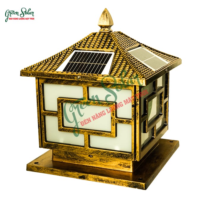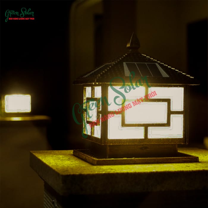 Đèn trụ cổng năng lượng mặt trời ô cửa đồng với thiết kế đơn giản, dùng để thu hút thị giác buổi tối, mang tính dẫn hướng trong không gian.